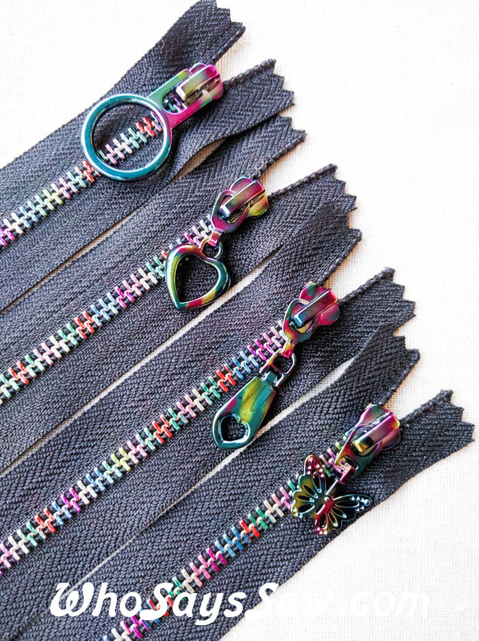 Absolutely high quality, unique and fun (mysterious too?!) rainbow metal teeth zipper in size 5, with 3 pull options that are all rainbow/iridescent as well! Also 4 lengths options to minimise the need to cut and waste such beautiful zippers: 20cm, 25cm, 30cm and 38cm.